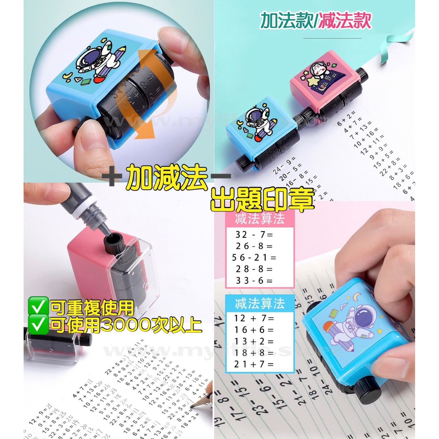 超方便出題法寶💡100內加減法出題印章 💢只需💰$45/個,2個起 $35/個 💢 ➕️ 想數學成績進步就要努力操數 ➖️ 成日都要買數學練習⁉️ 一於買返個加減法滾動印章💁🏻♀️ 有張A4紙📄就可以隨時出題️💯 每日俾小朋友做少少練習天天進步👏🏼 🔎款式:加法款 / 減法款 ✅可重複使用 ✅環保方便 ✅可用使用3000次以上 ✅小巧便攜帶 ✅附送埋 5ml 墨水 ✅️可印製100以內嘅題目 ✅️產品尺寸:約 44 x 30 x 48mm ✅️印出尺寸:約 20 x 4mm 🔥入數後2星期左右到貨(公眾假期除外) 🚚疫情期間影響運輸,所有貨品有機會延遲出貨,敬請留意 🔥 順豐運費到付